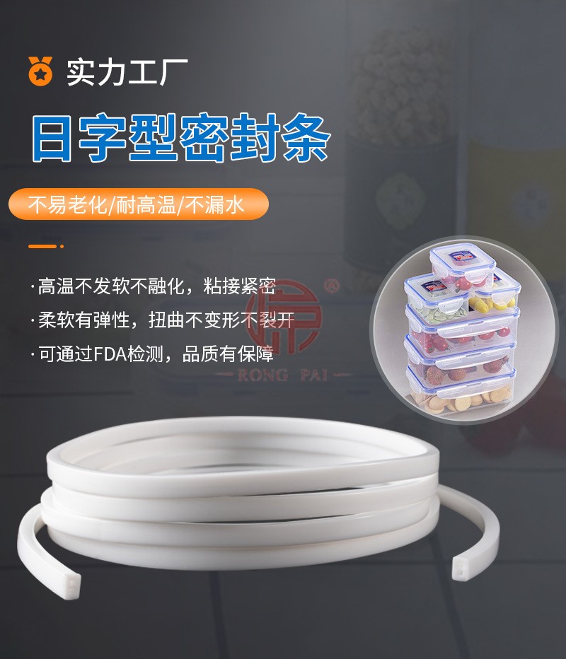 保鲜盒硅胶密封条是食品级有机硅混炼胶,加入硫化剂和其它助剂,通过高温加热硫化成型。经裁切机剪切所需长度,两端对接成产品,通过SGS抗老化测试,经实验室实测完成12000次开合仍保持弹性,有效解决传统硅胶条易发黄、变硬问题。双凹槽结构实现0渗漏密封,适配冷冻、微波、塑料保鲜盒、玻璃保鲜盒、冷柜周转箱、塑料水杯 、蒸煮等全场景,-60℃低温不脆化,300℃高温无析出,抑制大肠杆菌等微生物滋生,抗菌率超国标3倍。通过FDA、LFGB双认证,母婴用品安全标准,可接触油脂类食物。
