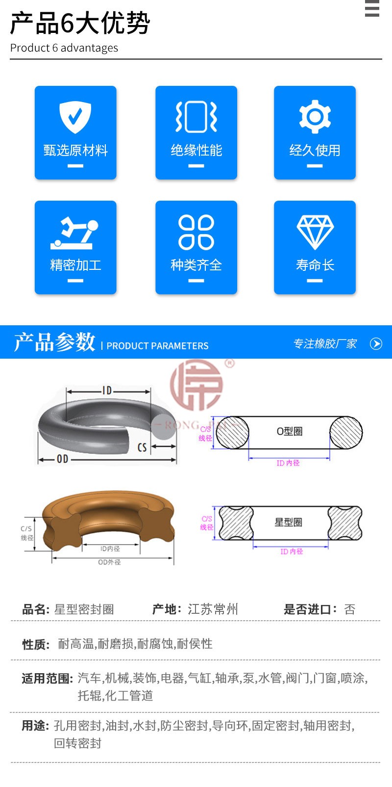 硅胶星型密封圈是有机硅混炼胶,加入硫化剂和其它助剂,通过高温加热 硫化成型。 广泛应用于电子电气、通讯设备、纺织机械、石油化工、生物设备 等行业。